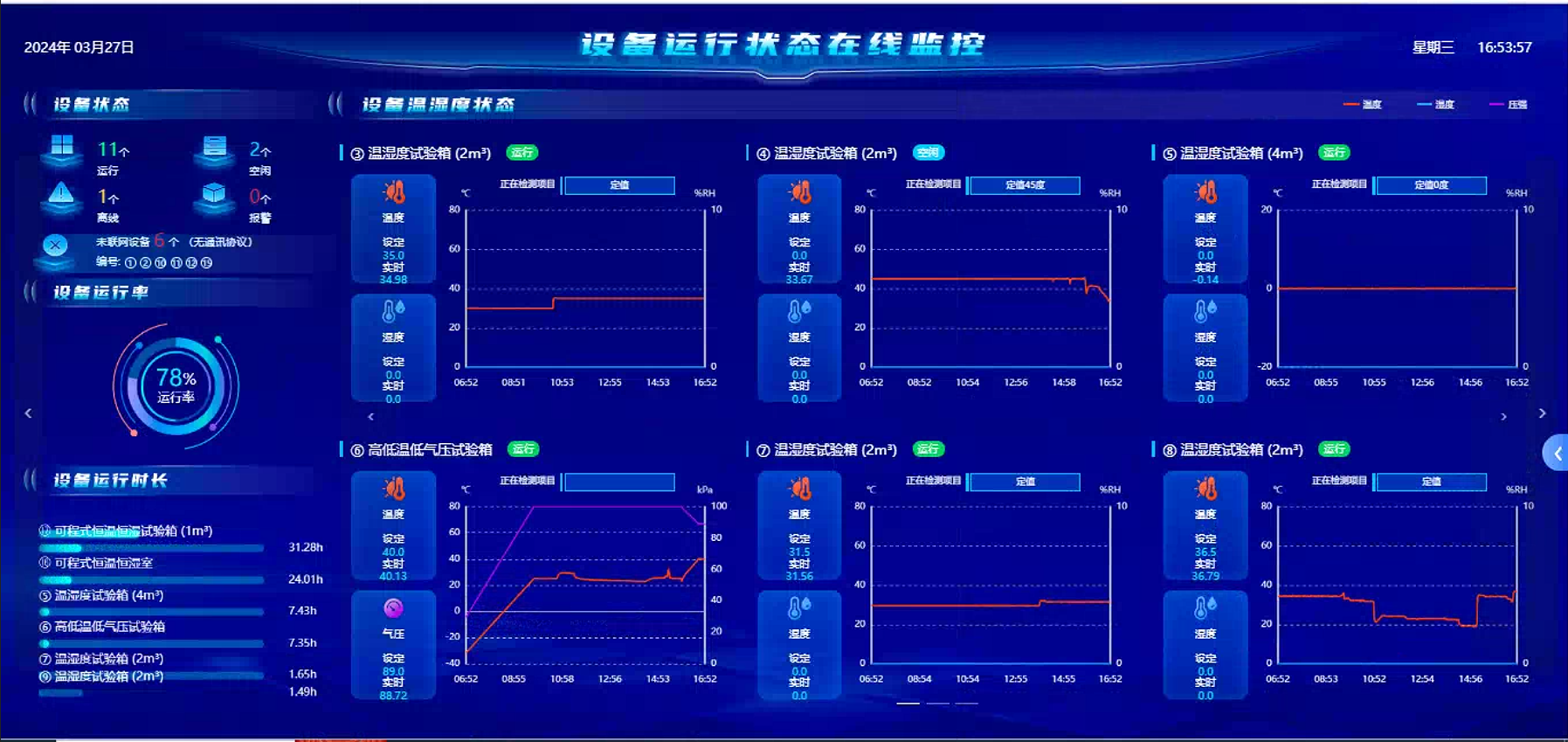 浪潮信息的實驗室每天要進行機械環境類(水平沖擊測試、抗壓測試、自由跌落測試、關機沖擊測試......)、氣候環境類(高溫測試、低溫測試、Quality測試......)等實驗,需要時刻關注設備狀態,以提高設備管理的效率和準確性,確保設備的正常運行和數據的可靠性。金現代LIMS通過數據采集實現實驗室設備實時監控。