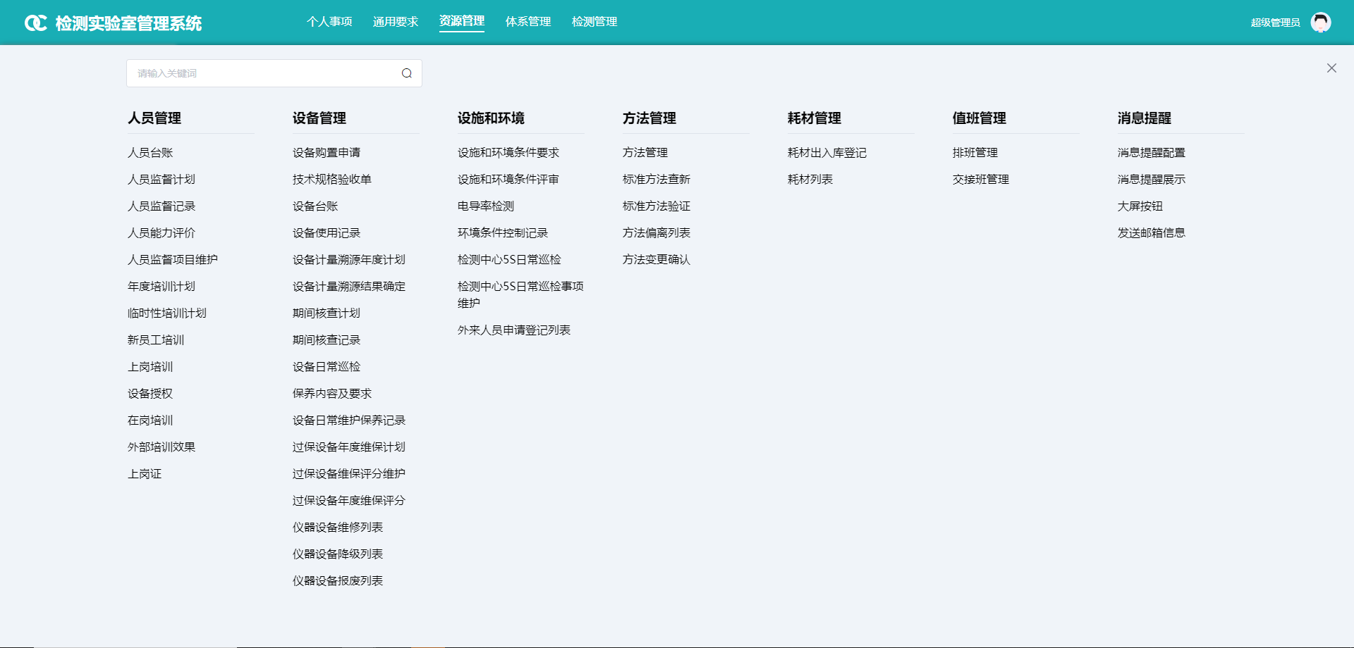 浪潮信息的實驗室是典型的電子實驗室,實驗類型主要包括:EMC、機械、材料、安規、性能等。浪潮信息對于LIMS實驗室管理系統的的需求包括資源管理(人員管理、設備管理、環境及設施管理、標準方法)、檢測業務過程管理(檢測業務、樣品管理)、查詢統計、數據采集、體系運行管理、系統管理、移動端應用等幾大模塊,其中資源管理、查詢統計、數據采集、體系運行管理為核心訴求。