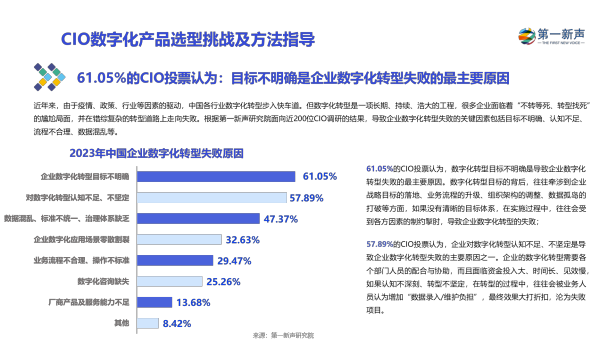 調查顯示,61%的CIO認為數字化轉型目標不明確是造成企業數字化轉型失敗的主要原因,對于制造業更是如此。