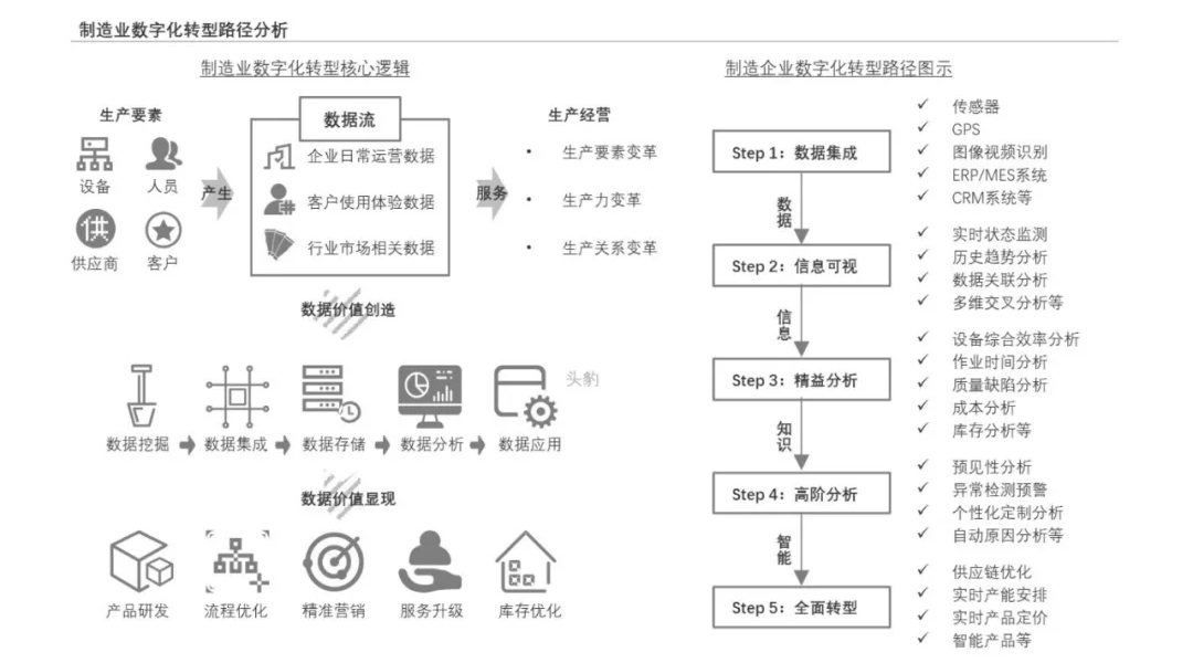 02 圍繞供應鏈上下游環節層層推進,切忌“大躍進”。通過ERP、財務管理、人力資源管理等統,對企業基礎運營流程進行升級改造;通過RDMS、MES、CRM、SCM等數字化運營管理系統,實現產品設計、用戶交付、生產過程、客戶維護等全過程的數字化;通過場景物聯,實現作業、現場、環境、設備設施狀態的數字化。